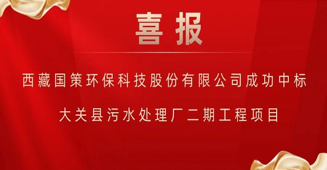 國策環(huán)保成功中標(biāo)大關(guān)縣污水處理廠二期工程(二次)BOT項(xiàng)目